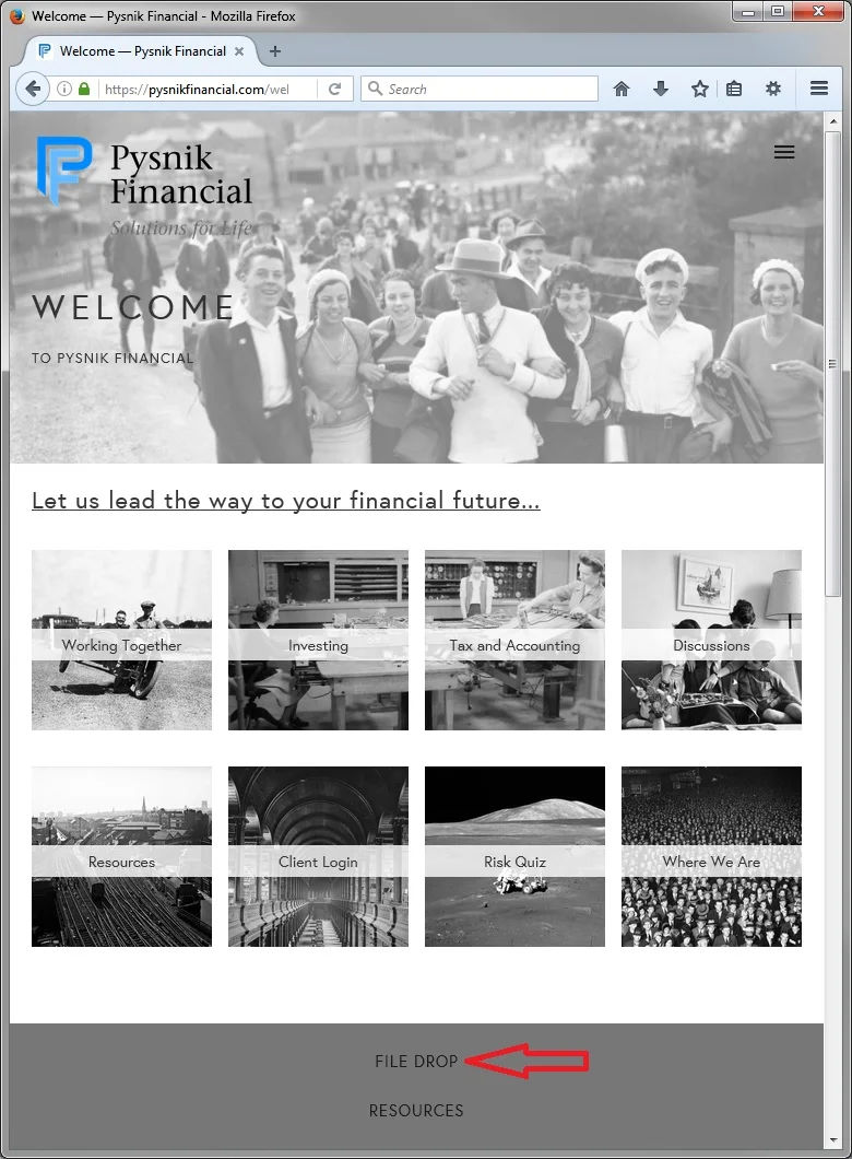 You can find the 'File Drop' link toward the bottom of any page on our website.
