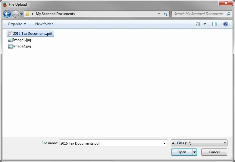 Select the file or files you wish to upload to our office and click the "Open" button.